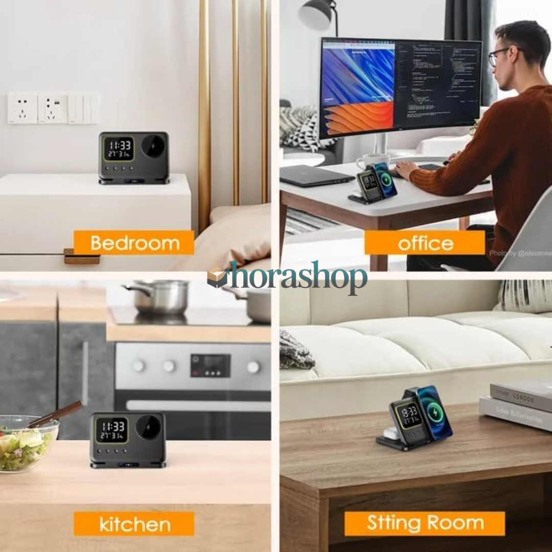 Carga tu celular, smartwatch, audífonos y más sin enchufes múltiples ni cables enredados. Ideal para quienes usan varios dispositivos a diario. -