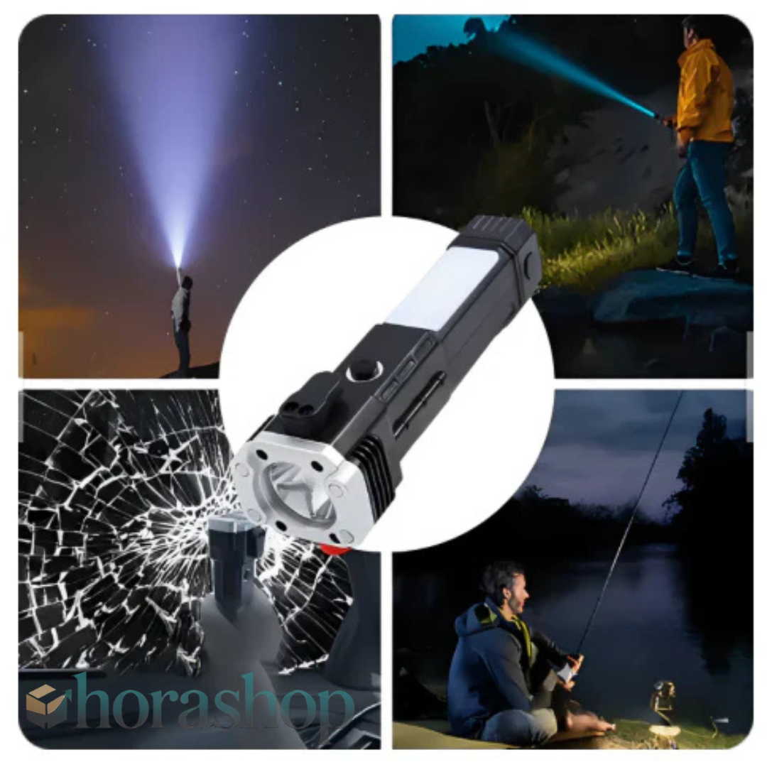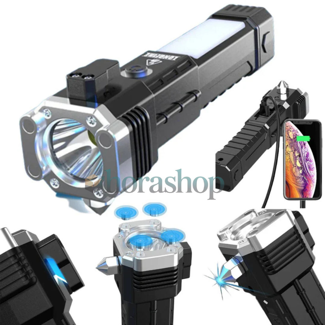 Cuerpo de aleación metálica, impermeable y a prueba de golpes. Cabe en mochilas o guanteras.¿Cómo se usa la Linterna Martillo 6 en 1?